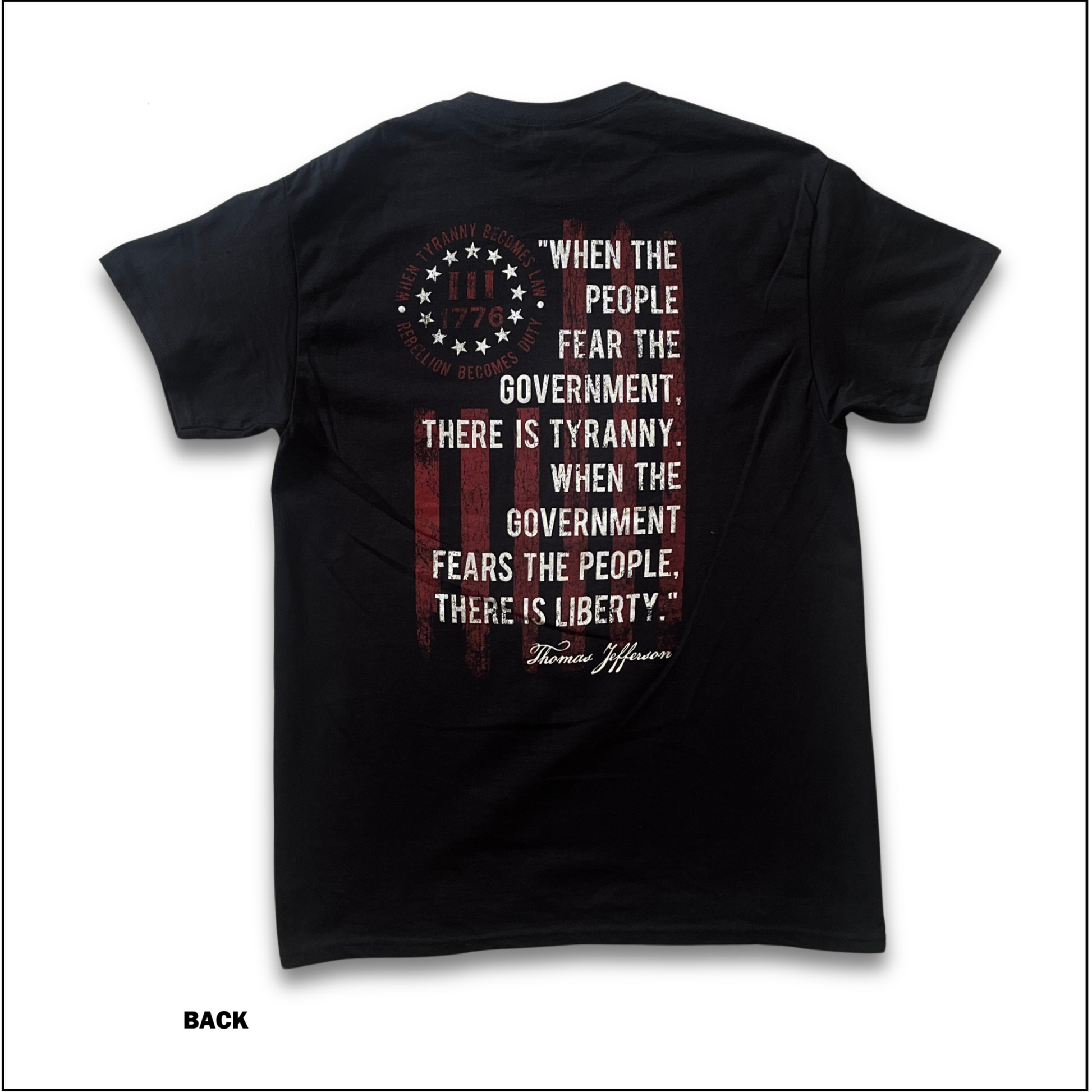 BACK: "When The People Fear The Government, There Is Tyranny. When the Government Fears the People, There is Liberty." - Thomas Jefferson