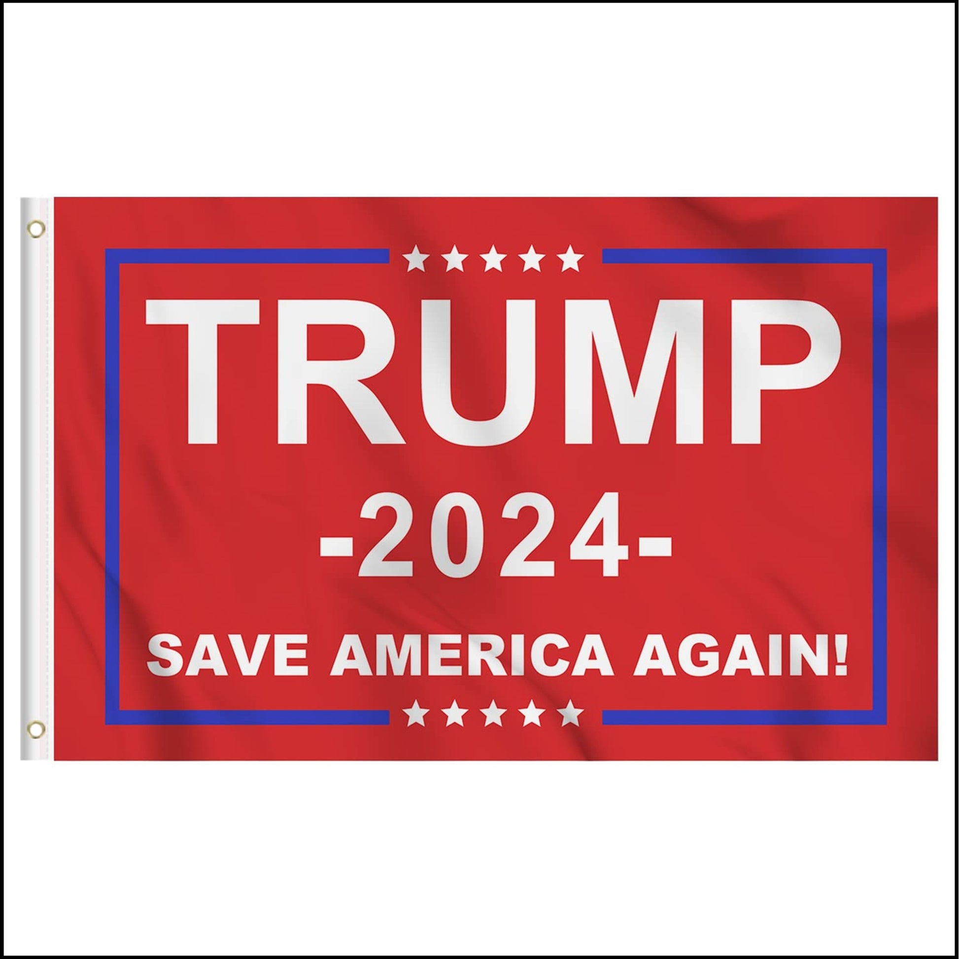 Donald Trump Save America Again 2024 US American President Election Banner Red Polyester 3x5 Feet Flags - Vivid Color and UV Fade Resistant Flag Outdoor Banner